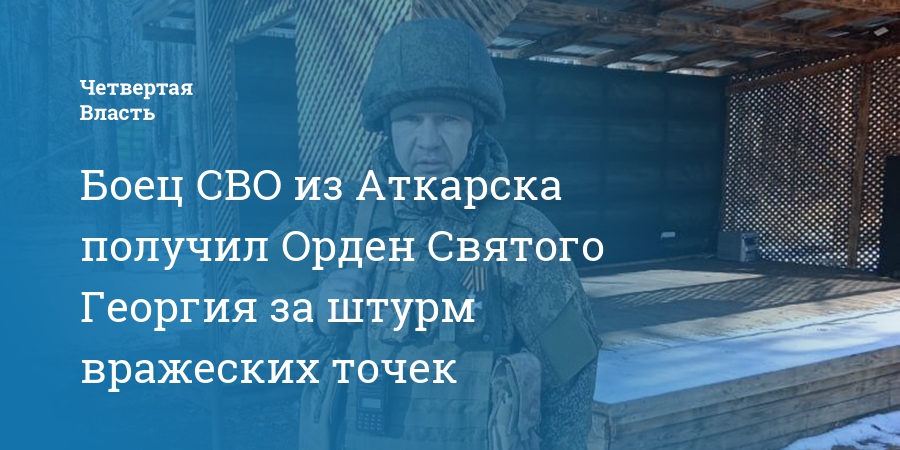 Боец СВО из Аткарска получил Орден Святого Георгия за штурм вражеских точек