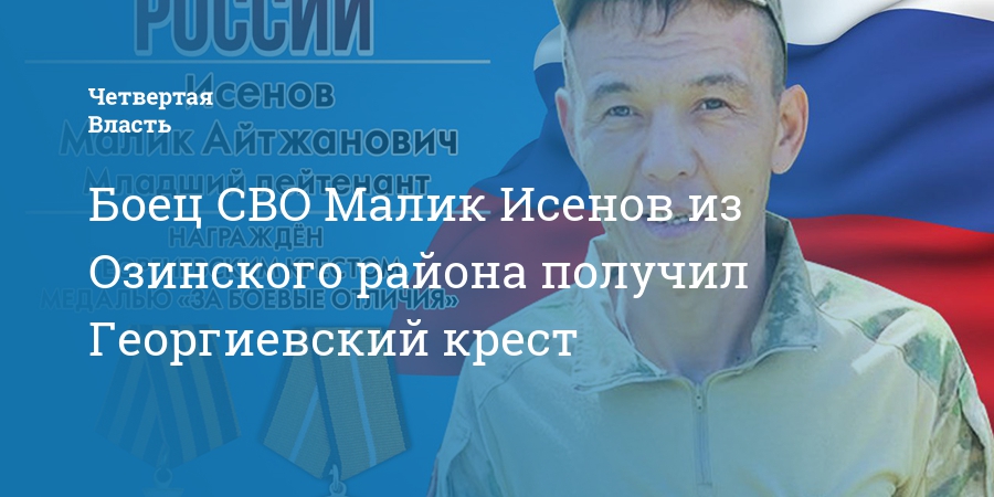 Уроженец Озинского района Саратовской области Малик Исенов получил госнаграды в ходе проведения специальной военной операции. Об этом сообщила сегодня, 8 декабря, глава района Антонина Галяшкина в своем телеграм-канале.