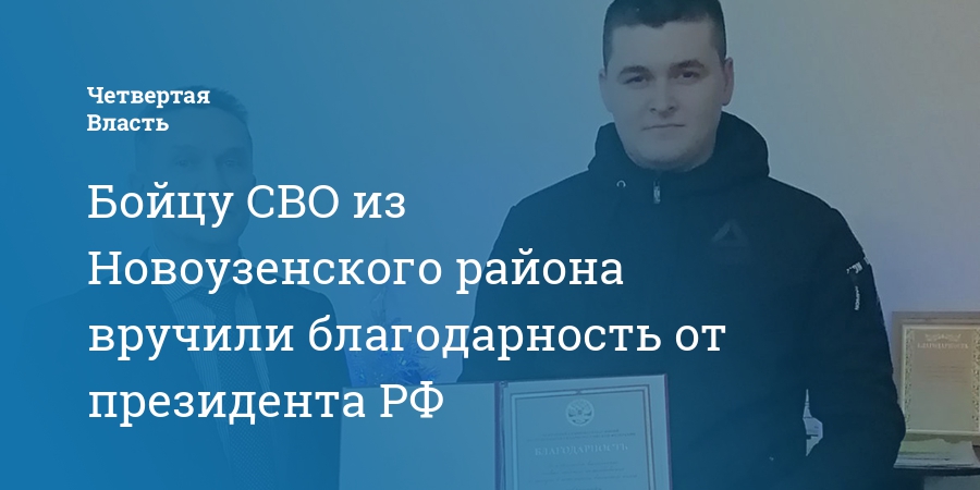 Сегодня, 28 декабря, в Новоузенском районе Саратовской области бойцу специальной военной операции вручили благодарность от президента РФ Владимира Путина. Об этом сообщил глава района Андрей Опалько в своем телеграм-канале.