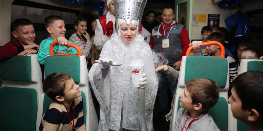 В пути следования для них были организованы развлекательные представления с участием аниматоров в костюмах сказочных персонажей. Они проводили различные конкурсы, показывали шоу мыльных пузырей и фокусы.