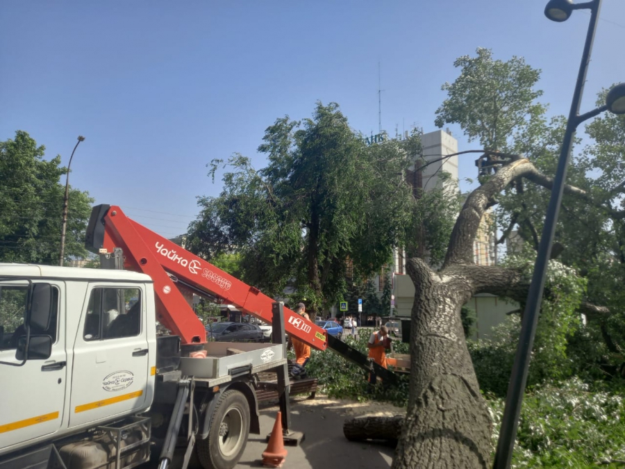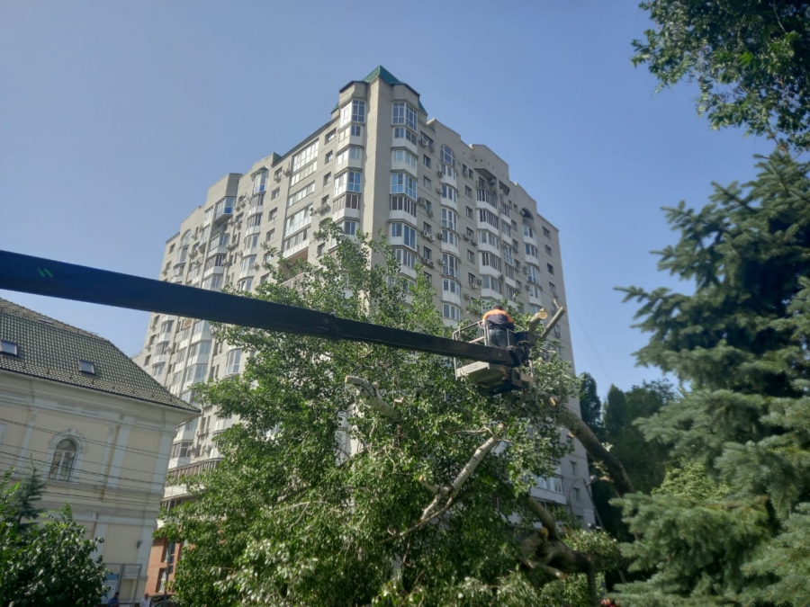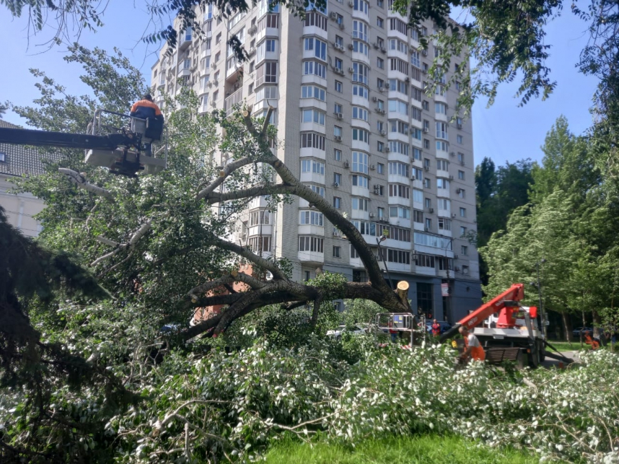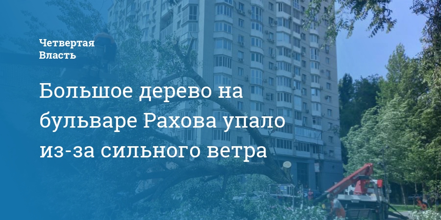Большое дерево на бульваре Рахова упало из-за сильного ветра