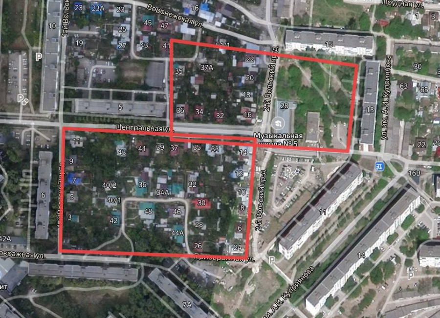 Участок в районе улицы Приовражная, на котором расположены частные дома, так же невозможно изъять для нужд города. Во-первых, стоимость выкупа территории у живущих там людей перевалит за 400 млн рублей, что тоже составляет значительную часть денег, выделенных на школу. Расселение жителей может занять ни один год, а так долго ждать невозможно.