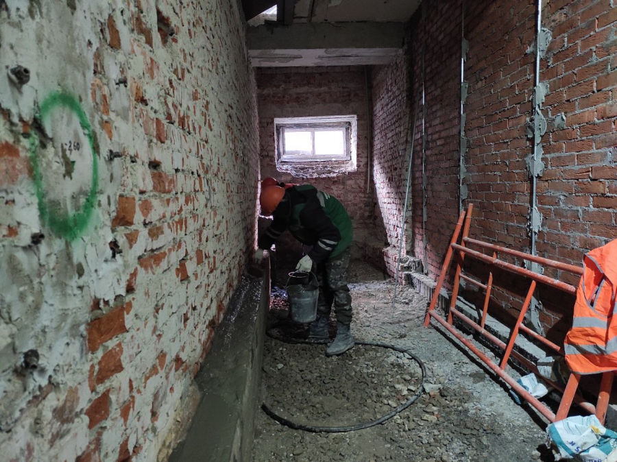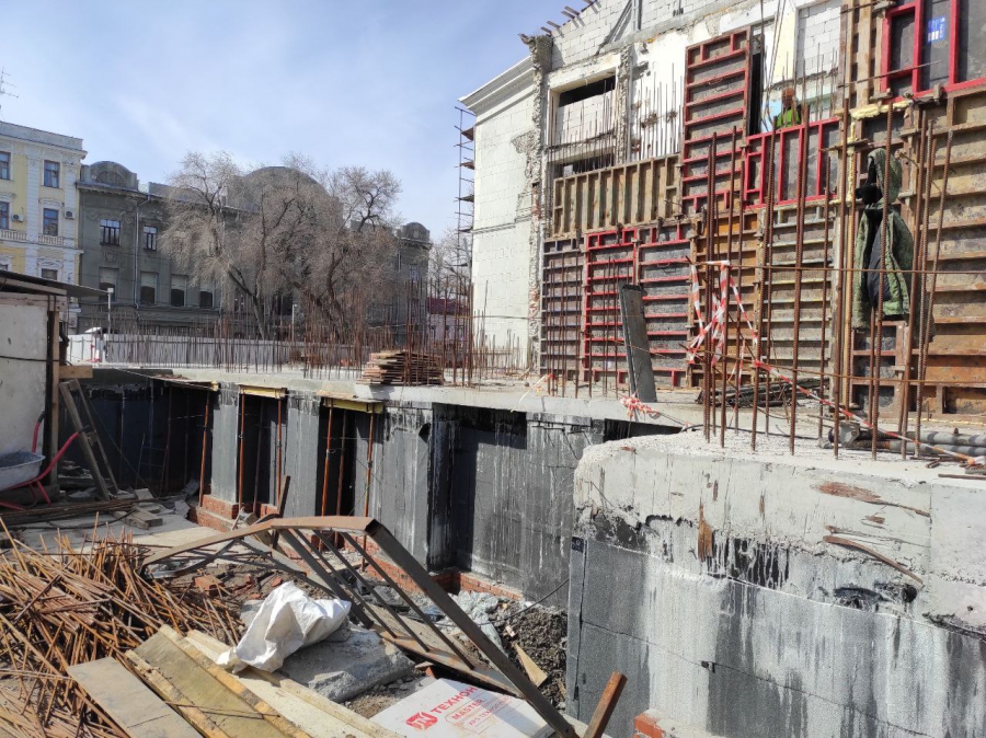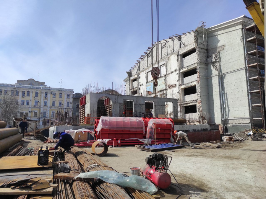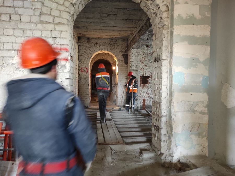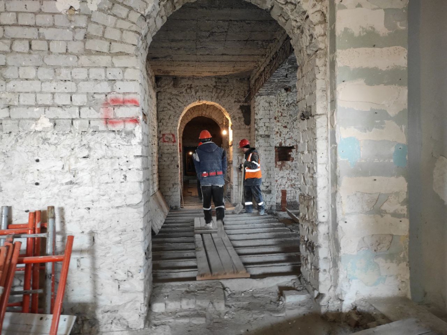 Из-за выявленных дефектов в несущих конструкциях и необходимости внести изменения в проект на объекте приостанавливали большую часть работ. Поэтому задача подрядчика сейчас - максимально усилиться по всем направлениям без потери качества.