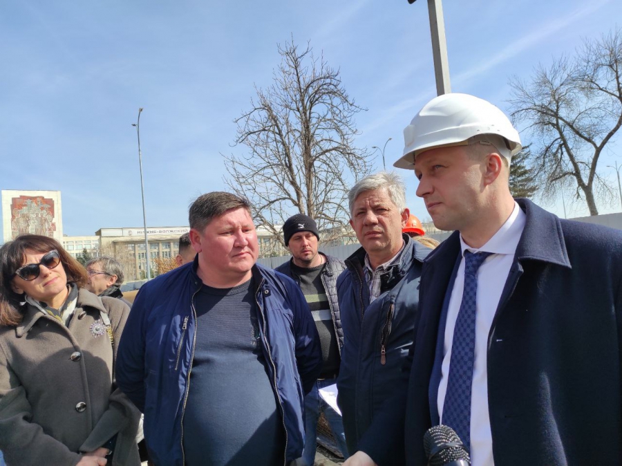 Политик посетил строительную площадку, осмотрел ход работ и пообщался с подрядчиком.