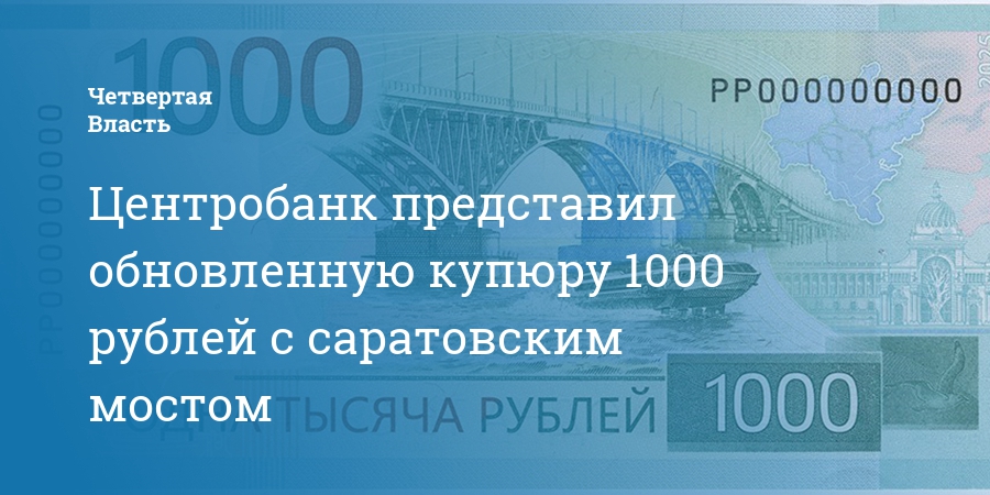 Центробанк представил обновленную купюру 1000 рублей с саратовским мостом