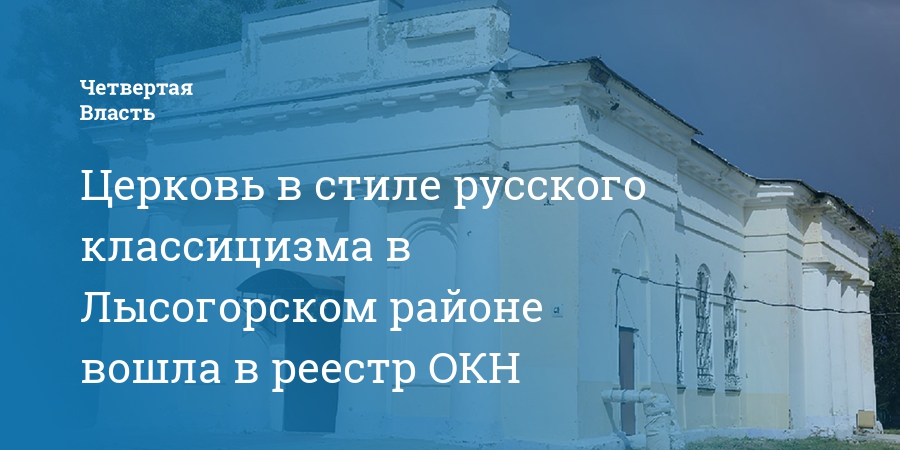 Церковь в стиле русского классицизма в Лысогорском районе вошла в реестр ОКН
