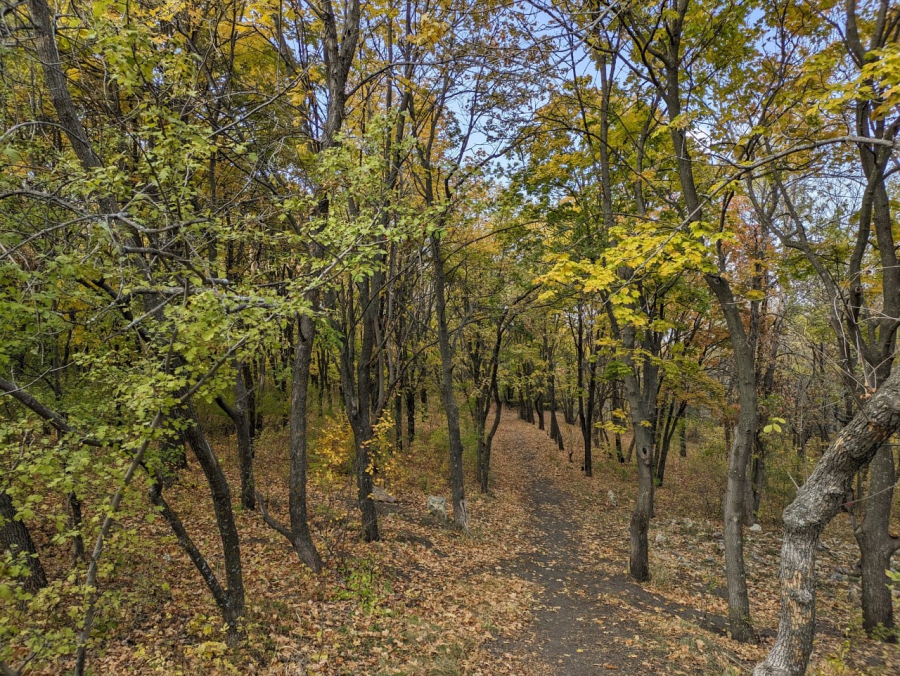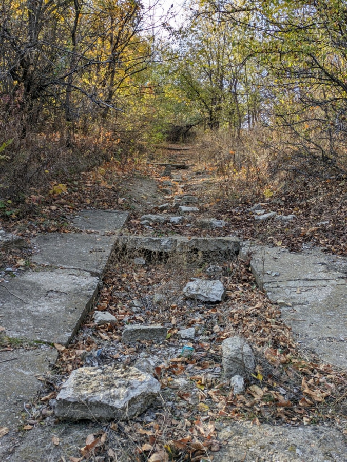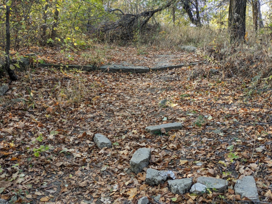 Он рассказал, что осмотрел с общественниками всю заброшенную часть парка от Национальной деревни до спуска к Волге. Сейчас эта зона сильно запущена и превратилась в лес с непролазными кустарниками. Ближе к нацдеревне находятся тропинки с валяющимися глыбами бетона, остатки недоделанных дорожек ещё с советских времён.