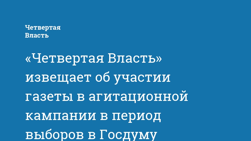 «Четвертая Власть» извещает об участии газеты в агитационной кампании в период выборов в Госдуму