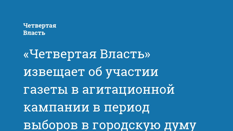 «Четвертая Власть» извещает об участии газеты в агитационной кампании в период выборов в городскую думу
