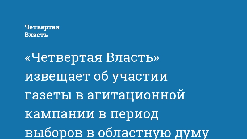 «Четвертая Власть» извещает об участии газеты в агитационной кампании в период выборов в областную думу