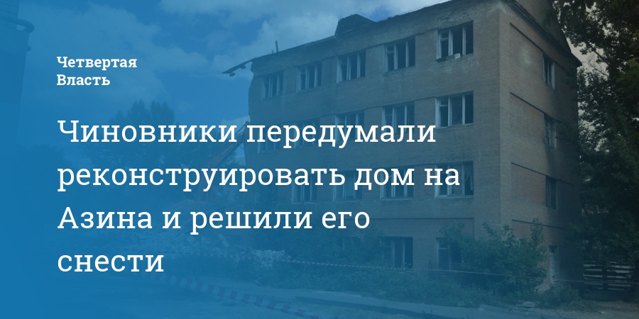 Чиновники передумали реконструировать дом на Азина и решили его снести
