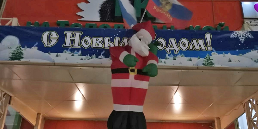 Чиновники попросили снять «повесившегося» Деда Мороза с козырька рынка