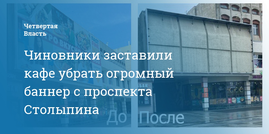 Чиновники заставили кафе убрать огромный баннер с проспекта Столыпина