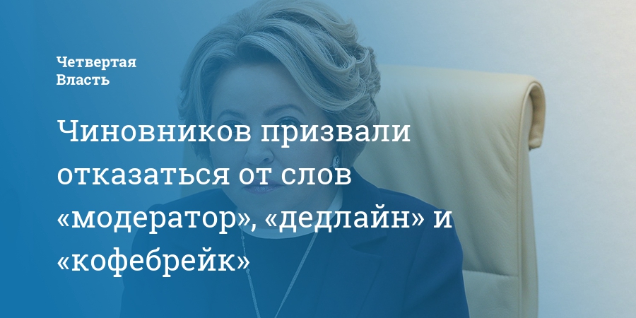 «Такие термины, как «модератор» - ведущий, «дедлайн» - срок исполнения, «кофебрейк» - понятно, что перерыв, ряд других, в большинстве случаев выглядят совершенно неуместно. Вот с этим, действительно, нужно спокойно бороться», - отметила Матвиенко.