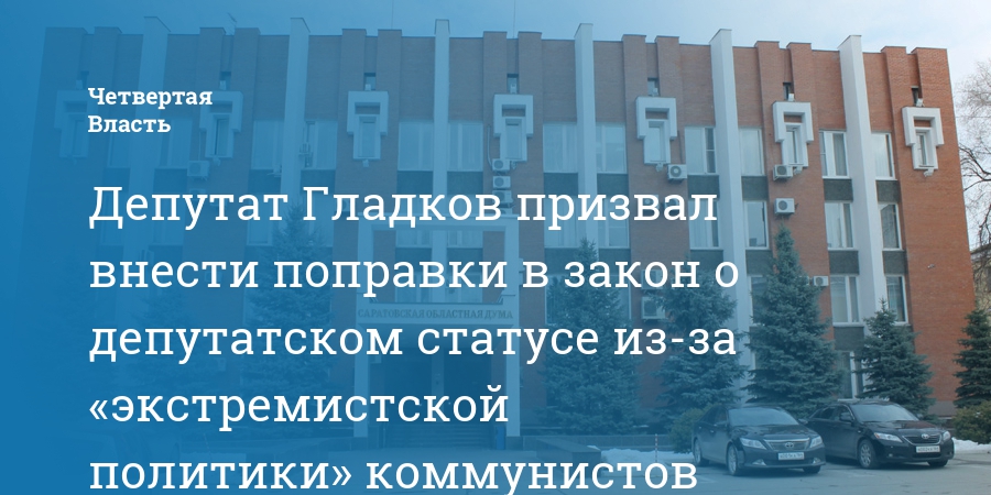 В законодательство Саратовской области о статусе депутата необходимо внести изменения, направленные на борьбу с «экстремистскими» действиями парламентариев. С такой инициативой выступил сегодня, 20 апреля, депутат Сергей Гладков на заседании регионального парламента.