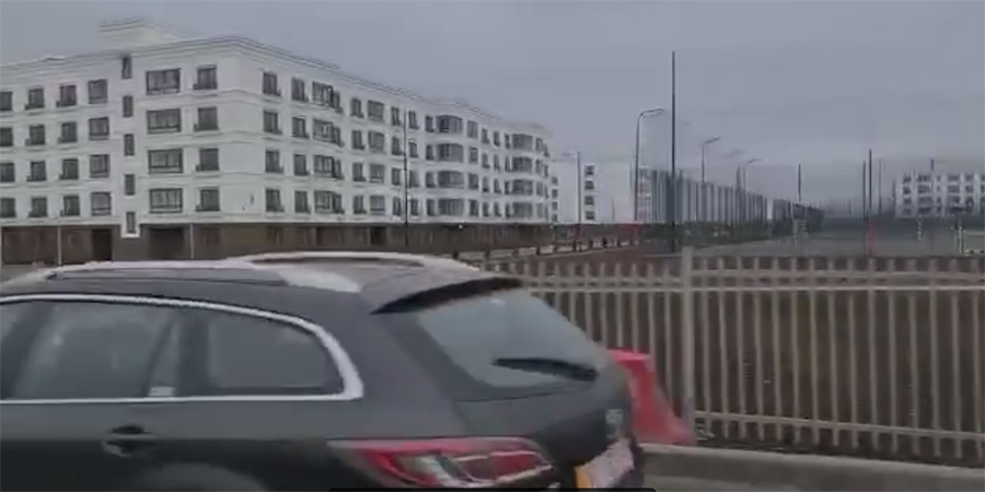 При этом дальше на кадрах видно строительство новых зданий. Работы идут в активном режиме, судя по кадрам одно большое здание вот-вот будет закончено.