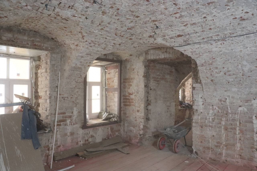 Уже практически отремонтирован фасад здания краеведческого музея. Правильно, что уличные работы начали в теплое время и с наступлением холодов перешли к реставрации внутренних помещений. Строители восстанавливают лепнину на потолках, реставрируют лестницу и помещения музея. Во всем здании усилены проемы и стены, отремонтирована кровля.