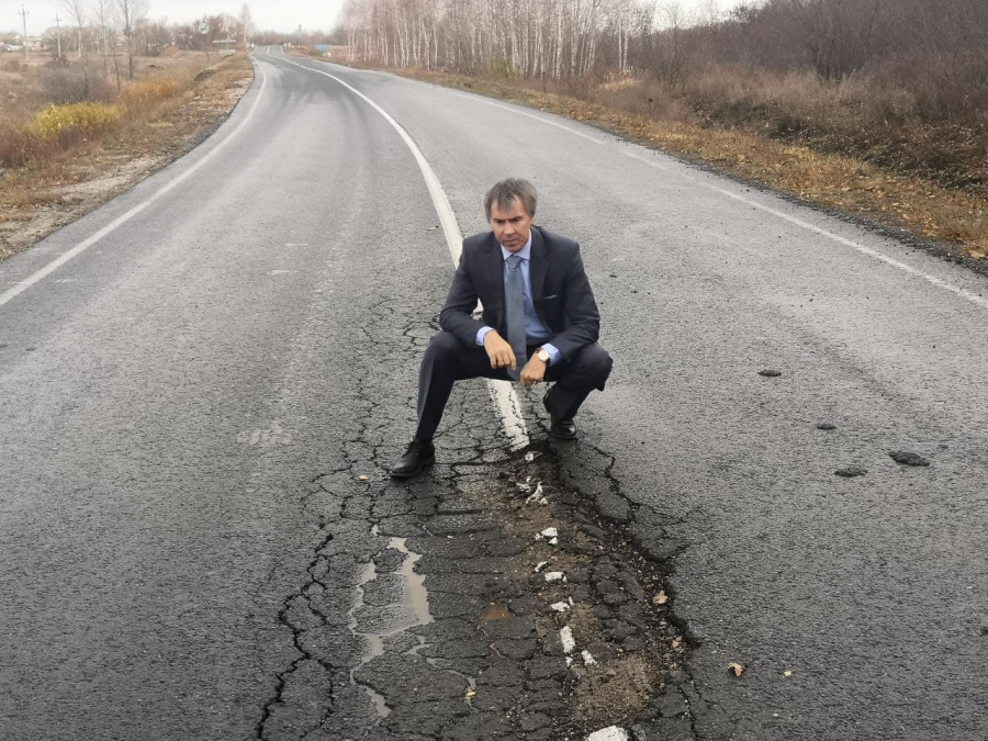 Сейчас дорога выглядит ровной, но на одном участке Рогожин обнаружил серьезный брак, где асфальт буквально рассыпается. Он подчеркнул, что заказчику в лице «Дирекции транспорта и дорожного хозяйства» в рамках гарантийных обязательств надо побудить подрядчика отремонтировать дефектный участок.