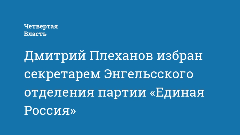 Дмитрий Плеханов избран секретарем Энгельсского отделения партии «Единая Россия»