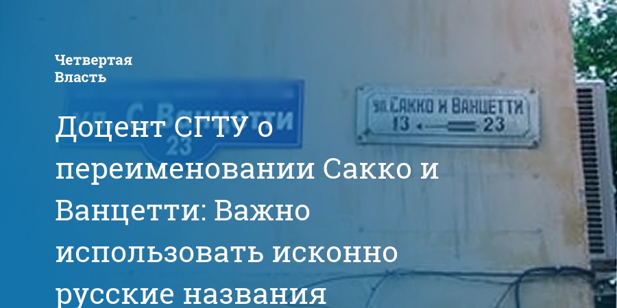 Доцент СГТУ о переименовании Сакко и Ванцетти: Важно использовать исконно русские названия