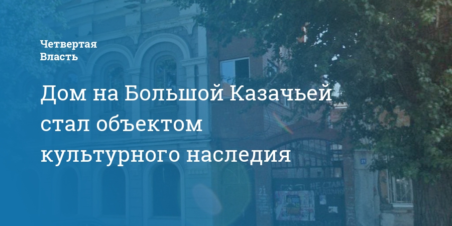 Дом на Большой Казачьей стал объектом культурного наследия