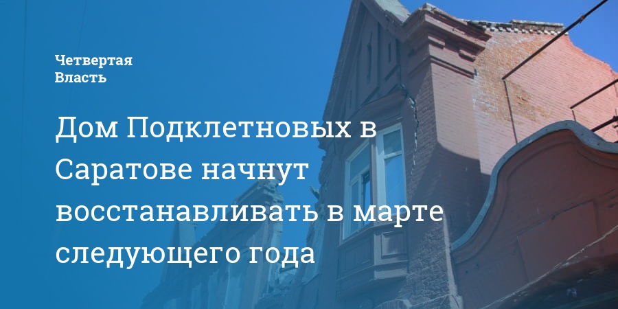 Дом Подклетновых в Саратове начнут восстанавливать в марте следующего года