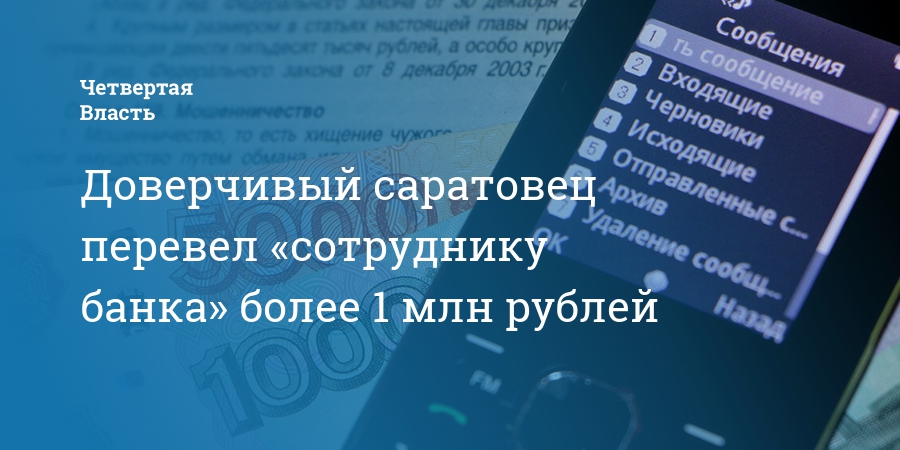 Доверчивый саратовец перевел «сотруднику банка» более 1 млн рублей