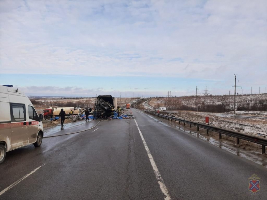 Сегодня утром, 8 февраля, на территории Волгоградской области, неподалеку от границы с Саратовской областью, произошла страшная авария с участием двух грузовиков и легковушки. По информации ГУ МВД соседнего региона, погиб один человек.