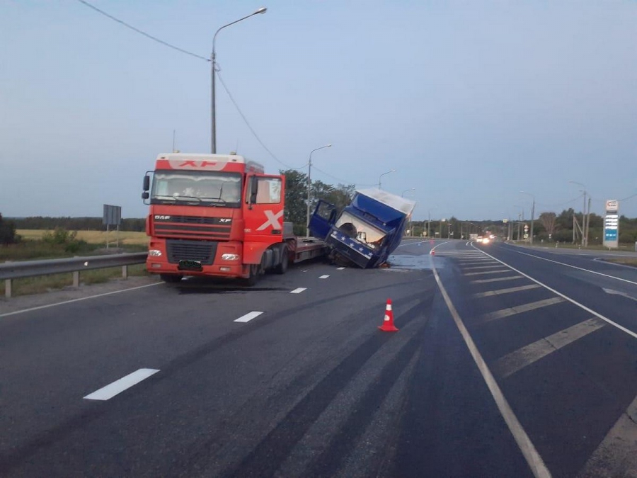 В результате ДТП водителя «МАЗа» госпитализировали с травмами. Оба грузовика получили механические повреждения.