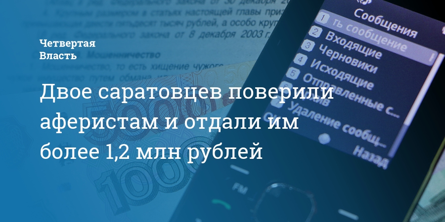 Двое саратовцев поверили аферистам и отдали им более 1,2 млн рублей