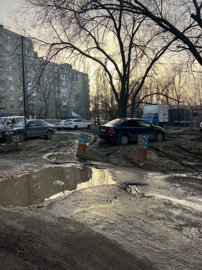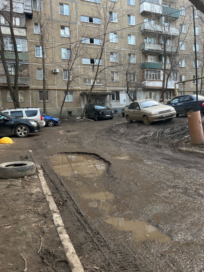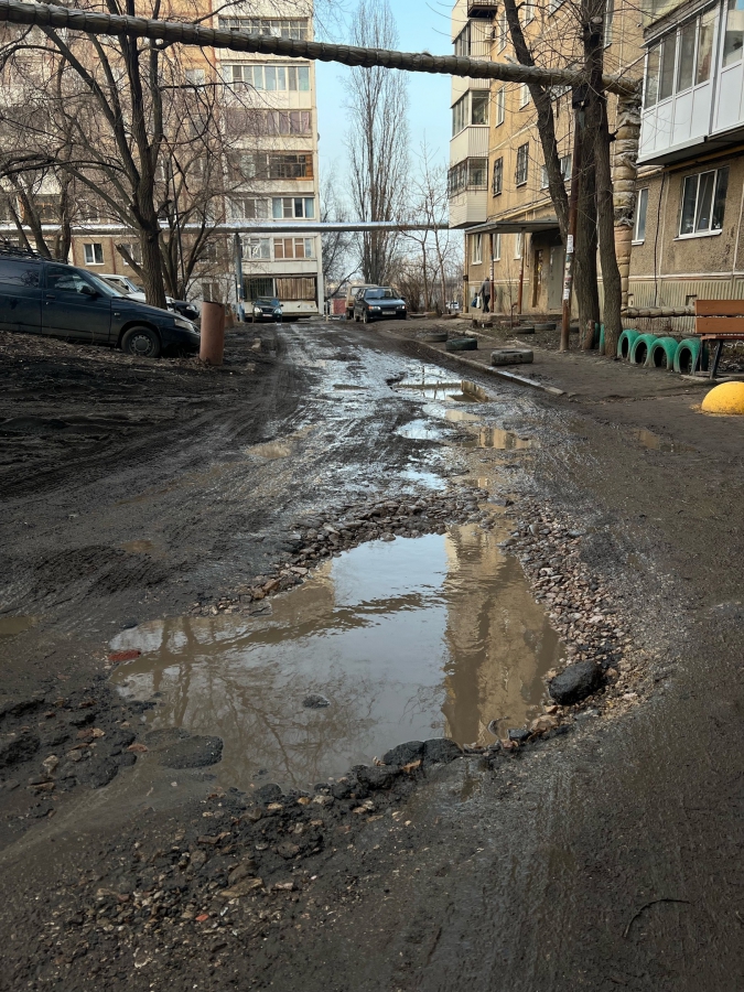 В Ленинском районе Саратова двор одного из жилых домов весь в грязи и лужах. На это местные жители пожаловались в группе «Солнечный Саратов» соцсети «ВК».