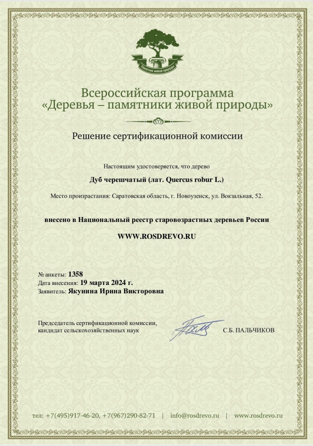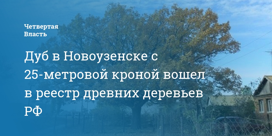 Дуб в Новоузенске с 25-метровой кроной вошел в реестр древних деревьев РФ
