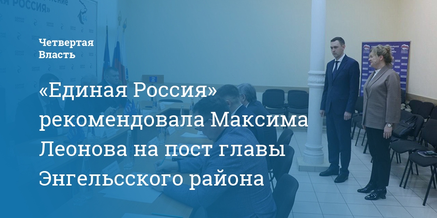 Исполняющего полномочия главы Энгельсского района Саратовской области Максима Леонова согласовали для избрания на должность главы ЭМР. Такое решение приняли на заседании президиума регионального политсовета партии «Единая Россия».