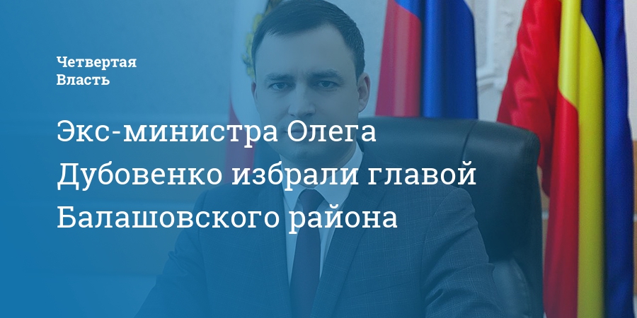 Главой Балашовского района Саратовской области избран бывший министр спорта Олег Дубовенко. Эту информацию «Четвертой Власти» подтвердили в региональном министерстве по делам территориальных образований.