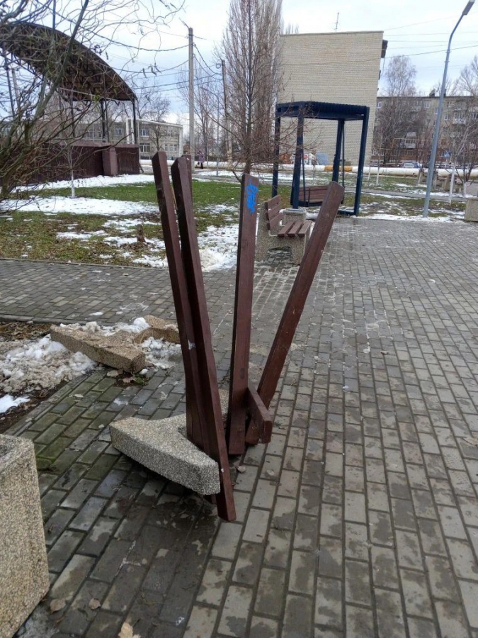 За последнее время были сломаны скамейки в сквере «Верным сынам Отечества», оторвана буква на молодежной аллее у кинотеатра «Родина», обломаны новые саженцы в сквере «Ладошки», разломана скамья в сквере имени Сергея Горевского.