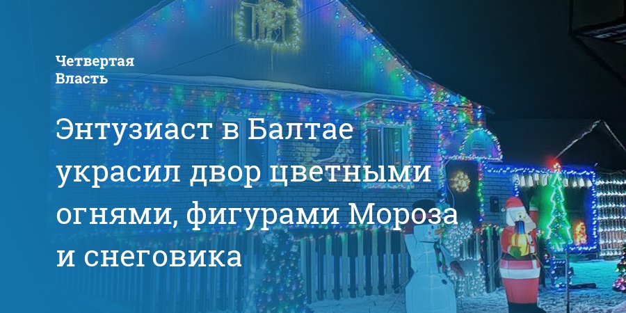 Энтузиаст в Балтае украсил двор цветными огнями, фигурами Мороза и снеговика