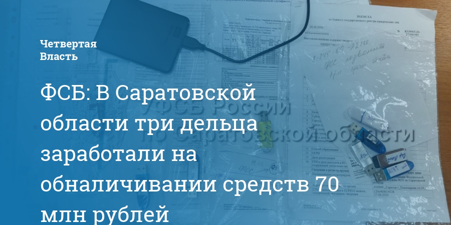 ФСБ: В Саратовской области три дельца заработали на обналичивании средств 70 млн рублей
