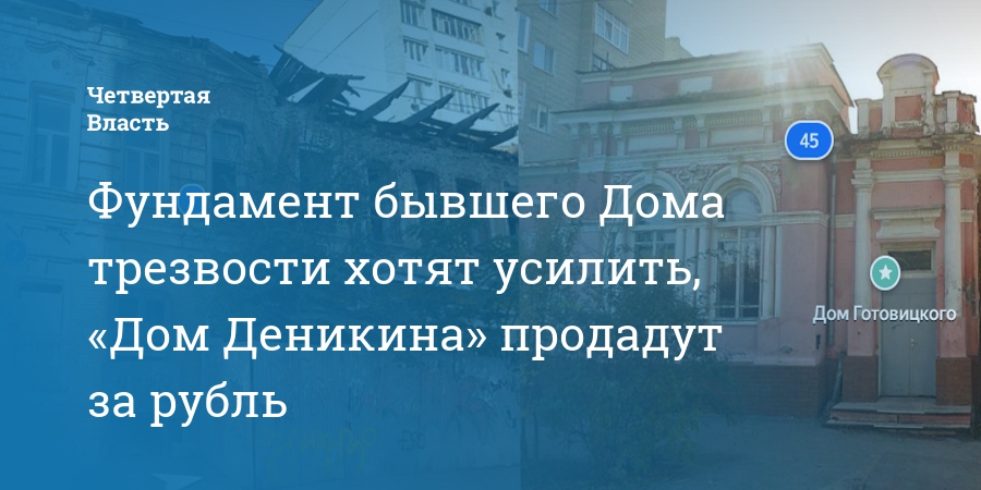 Фундамент бывшего Дома трезвости хотят усилить, «Дом Деникина» продадут за рубль