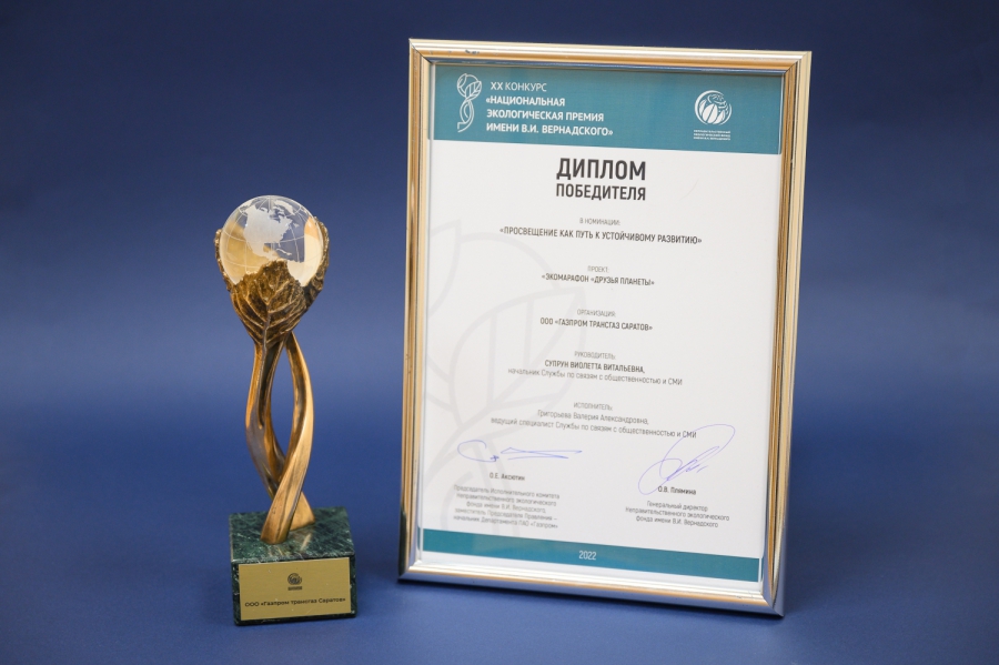 «Газпром трансгаз Саратов» – обладатель Национальной экологической премии им. Вернадского