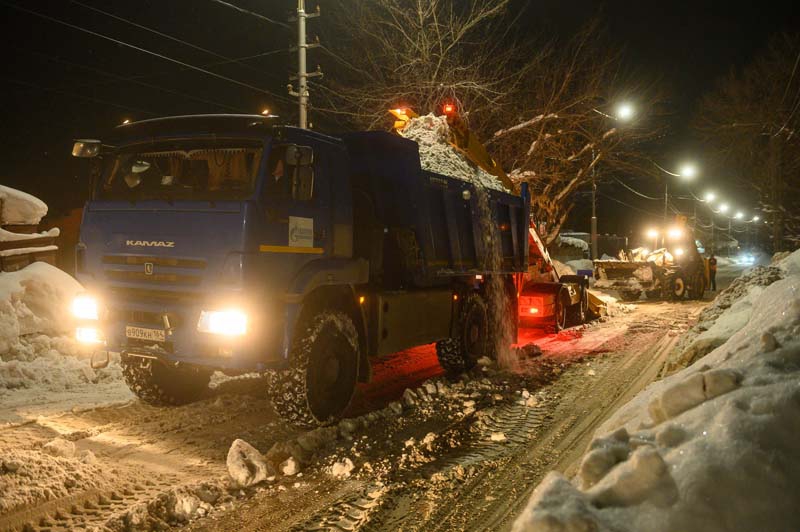 Также самосвалы предприятия были задействованы в уборке снега на улице Огородной в Заводском районе.