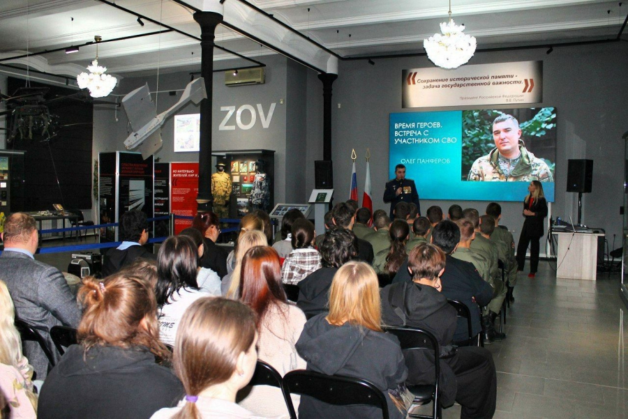 В Саратове герой специальной военной операции Олег Панферов посетил музей СВО и провел патриотическую встречу с учащимися. Как сообщила пресс-служба министерства культуры области, встреча прошла в рамках цикла мероприятий «Время героев».