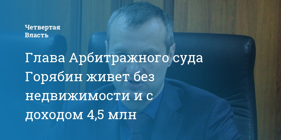 Глава Арбитражного суда Горябин живет без недвижимости и с доходом 4,5 млн
