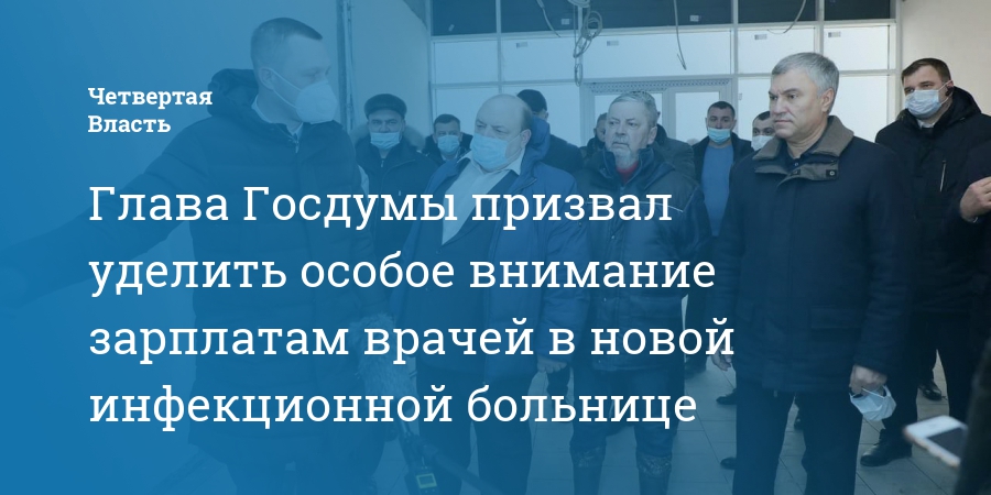 Глава Госдумы призвал уделить особое внимание зарплатам врачей в новой инфекционной больнице