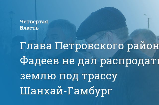 Глава Петровского района Фадеев не дал распродать землю под трассу Шанхай-Гамбург