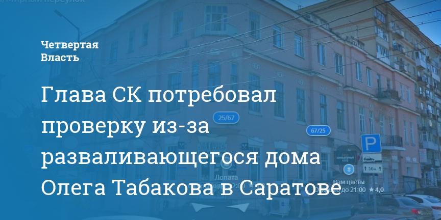 Во Фрунзенском районе Саратова разваливается дом, в котором проживал народный артист Олег Табаков. Председатель Следственного комитета РФ Александр Бастрыкин поставил на контроль обращение горожанина об этом.