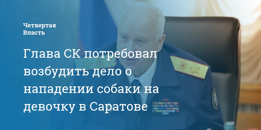 Председатель Следственного комитета России Александр Бастрыкин поручил руководителю СУ СК по Саратовской области Анатолию Говорунову возбудить уголовное дело по факту нападения собаки на несовершеннолетнюю. Об этом сообщили в информационном центре СК России.