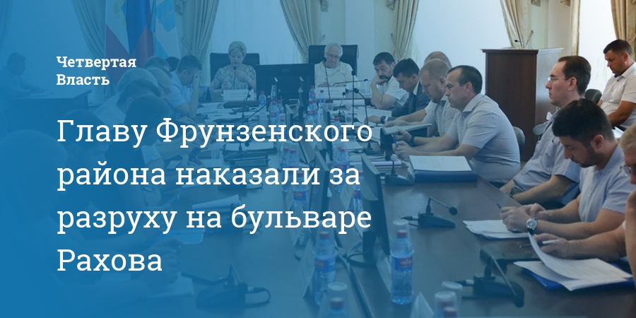Во время совещания глава города Лада Мокроусова призвала районных руководителей уделять пристальное внимание зеленым зонам и местам, где отдыхают горожане. По поводу разрухи в сквере на улице Рахова жители неоднократно высказывали жалобы, однако ответа не получали. Ответственность за это понес глава Фрунзенского района, которому надлежало следить за состоянием общественного места.