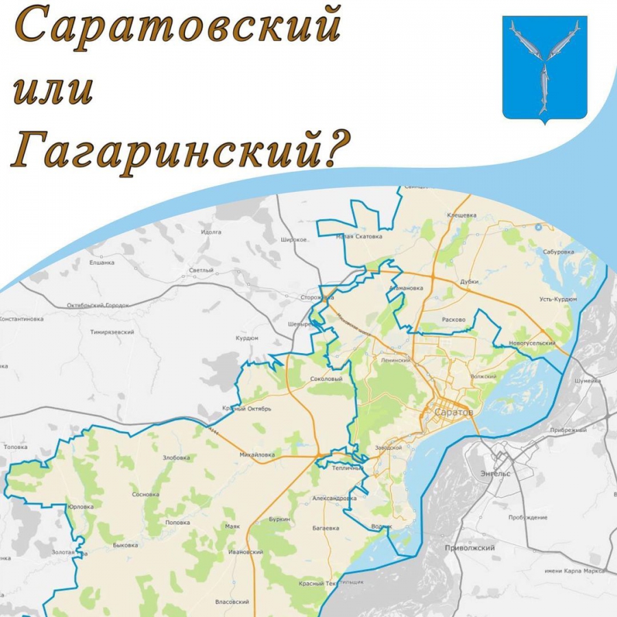 Саратовский район, который с 1 января 2022 года официально станет частью Саратова и седьмой административной единицей муниципального образования, могут переименовать в Гагаринский район. Как следует из результатов опроса, запущенного мэрией Саратова в телеграм-канале, большинство поддерживает эту идею.