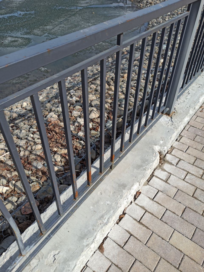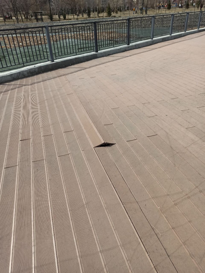 Как отметили местные жители, в этом году в сквере имени Марины Расковой после холодов деформировалось покрытие на главной площадке. В пластике образовались провалы. Помимо этого, из-за отсутствия заглушек вода и снег попали в столбики забора, поэтому элементы вздулись и округлились. Еще одной проблемой с забором стала его коррозия.