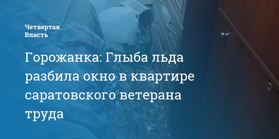 Вчера в Саратове в здании бывшего общежития глыба льда разбила окно в квартире ветерана труда. Об этом рассказала внучка женщины, Мария Дуброва.